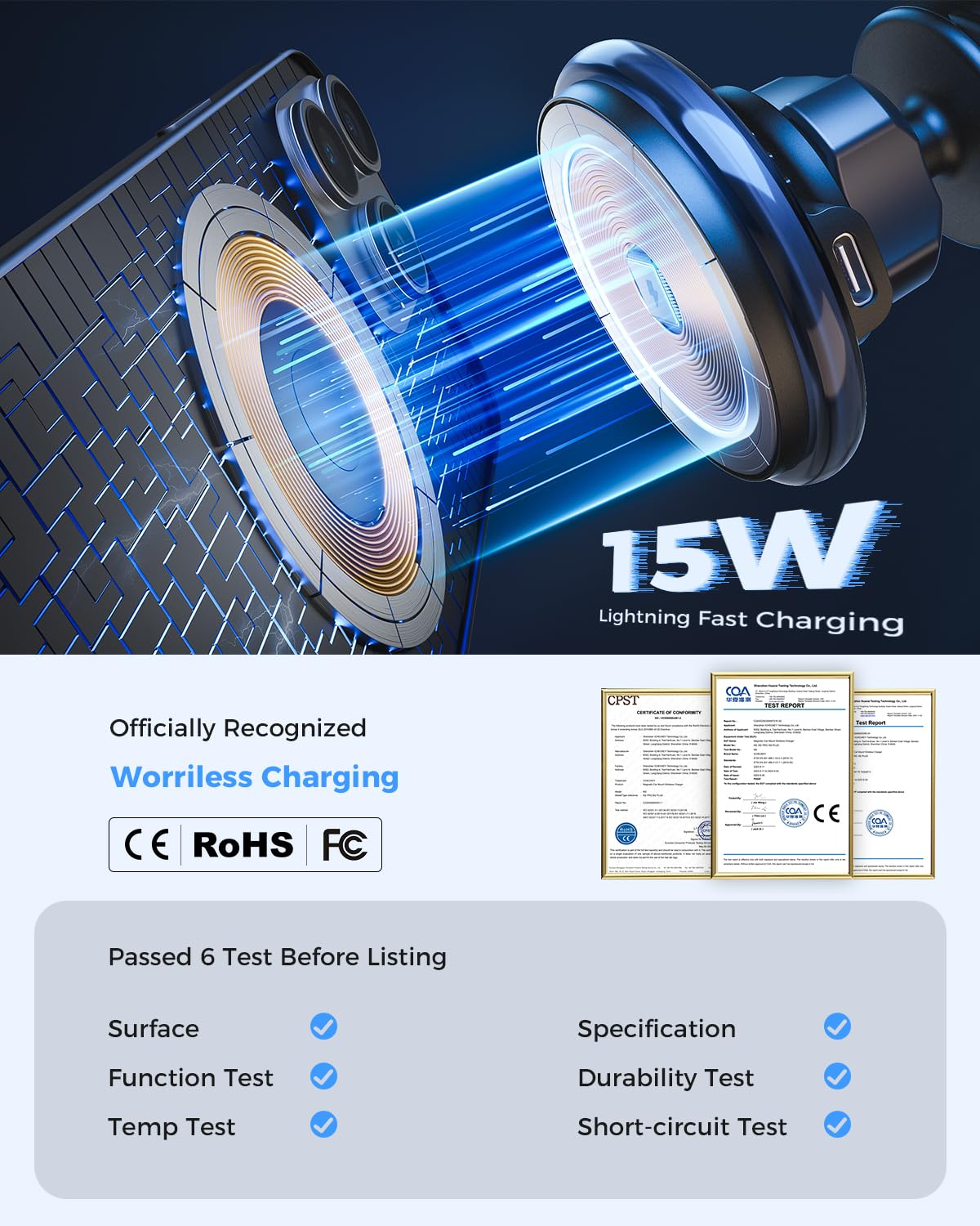 - ⚡15W Fast Charging: This MagSafe-Compatible car charging mount with intelligent heat management enables you to charge your devices with up to 15W of power which is identical to Official MagSafe chargers.